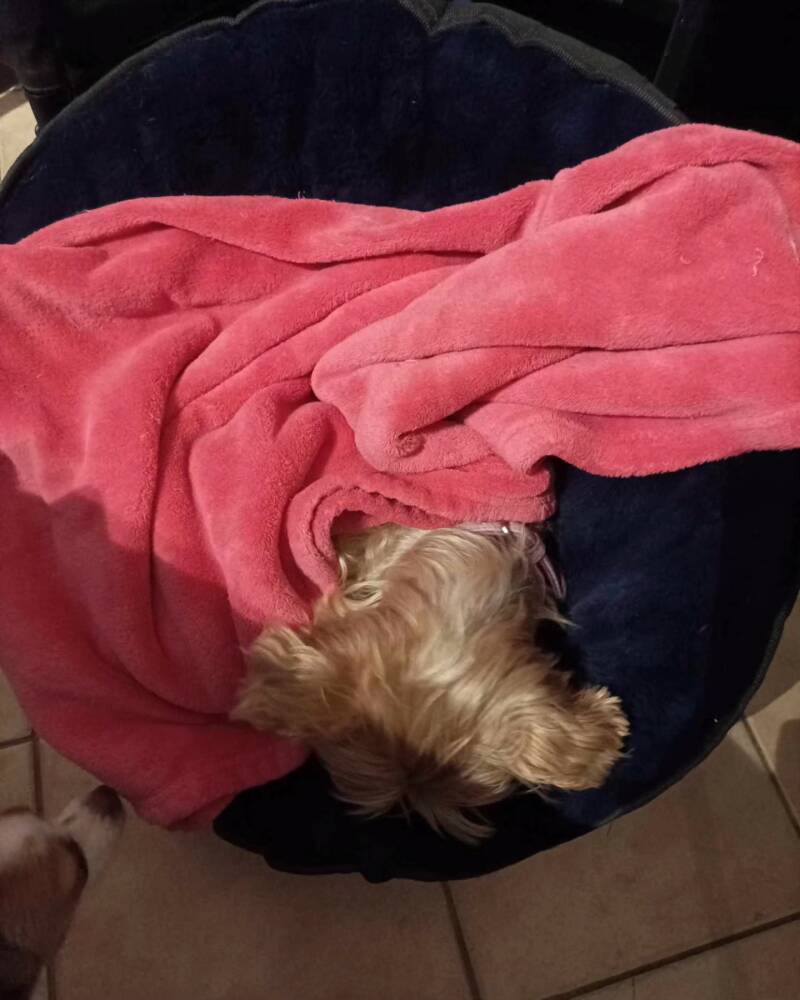 Voilà, la semaine commence mal... Gueïsha est en crise de lupus. Elle tremble, refuse tout et reste dans son dodo... elle n'a pas dormi de la nuit et a passé son temps à se gratter...