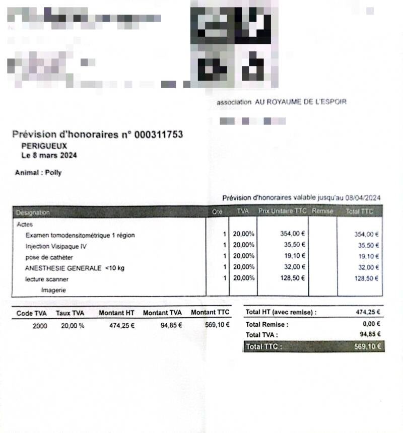 Bien sûr, à cause des mauvais soins nous en sommes déjà à 1471€11 de frais et ce n'est pas fini. Nous n'avons pas pris de frais d'abandon pour ce sauvetage car nous avons voulu être humains et ne pas faire payer la famille pour les erreurs de leur père. Mais aujourd'hui, la situation est critique et sans aide nous ne pourrons continuer les frais pour eux sachant que d'autres sauvetages arrivent…