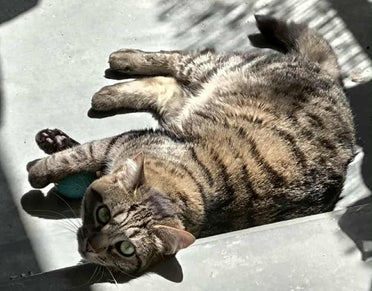 Minette européenne tigrée de 5 ans prénommée Plume, elle a un caractère très craintif et ne se montre qu'en présence de ses maîtres ! Elle ne connaît pas le monde extérieur 😕